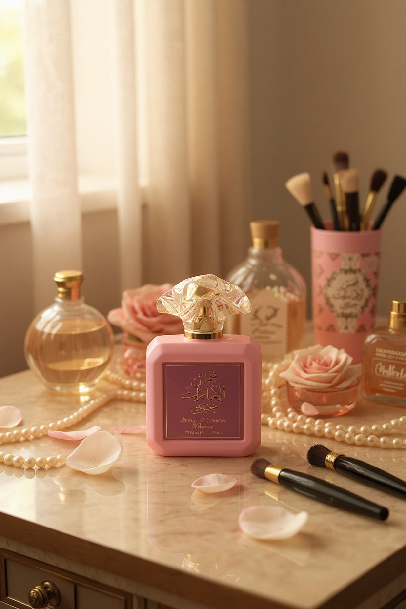 Pink Blush’s oil-rich Arabic base is engineered to outlast your day — not just the morning. Our secret? Concentration levels inspired by elite Emirati formulations. One spray. Endless compliments.